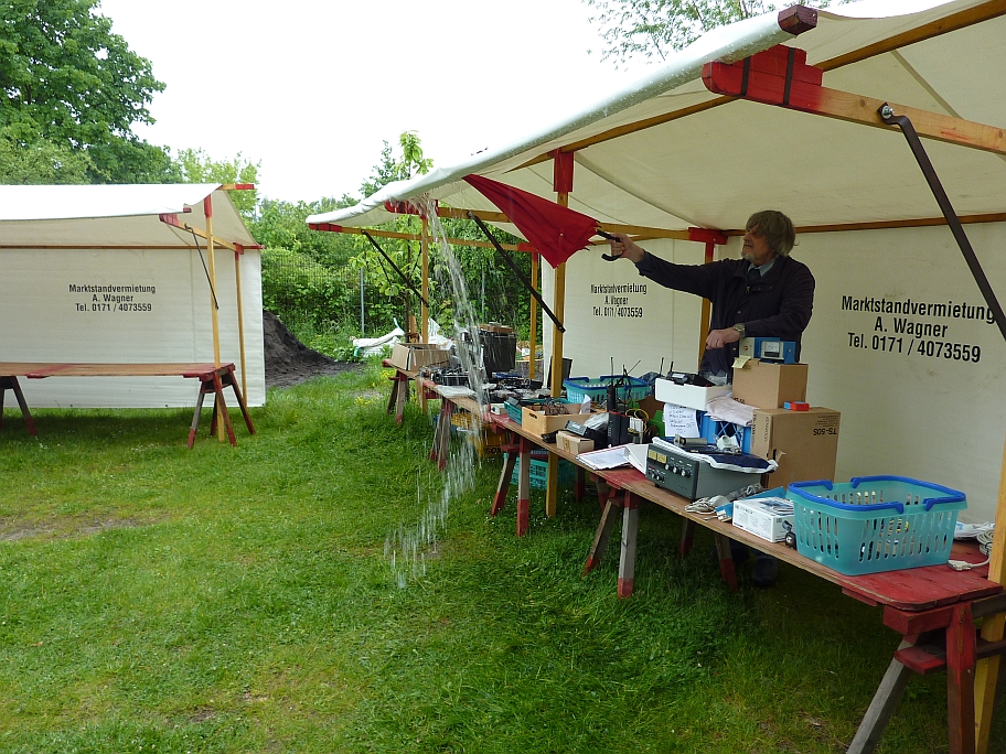 Achim DL7YY hängt irgendwas zu trocknen auf. Rechts Detlef DL7VS
